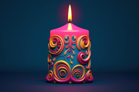 candle yellow brown blue background light flame warmth glow relax serene tranquil peaceful calming cozy inviting homey decorative elegant stylish sophisticated contemporary modern art design beauty aesthetic photographyImagine Buddy