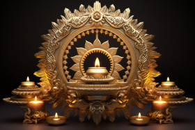 diwali deepavali dipavali festival lights india 3d rendering gold diya podium patterned crystals colorful background celebration joy happiness new year prosperity wealth light darkness good evil hope peace love tradition culture religion spiritual family friends community homeImagine Buddy