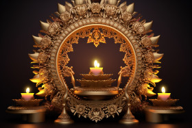 diwali deepavali dipavali festival lights india 3d rendering gold diya podium patterned crystals colorful background celebration joy happiness new year prosperity wealth light darkness good evil hope peace love tradition culture religion spiritual family friends community homeImagine Buddy