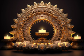 diwali deepavali dipavali festival lights india 3d rendering gold diya podium patterned crystals colorful background celebration joy happiness new year prosperity wealth light darkness good evil hope peace love tradition culture religion spiritual family friends community homeImagine Buddy