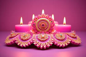 diwali candles pink 3d india holiday festival light celebration rangoli diya oil lamp hindu tradition culture religion spirituality hope prosperity peace joy love happiness blessings auspicious festive decorative vibrant colorful beautiful stunningImagine Buddy