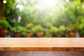 nature garden outdoor wood table wooden bench flowers plants trees green blur background rustic vintage antique shabby chic farmhouse cottage patio backyard deck landscaping scenery peaceful tranquil serene relaxing inviting cozy warm welcoming homey product backgroundImagine Buddy