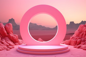 pink pedestal landscape sunset nature outdoor scenery clouds sky twilight evening hill mountain horizon sun light color bright vibrant calming peaceful serene tranquil romantic beautiful inspiring majestic awe-inspiring breathtaking dreamy ethereal otherworldly fantasy surreal dreamlike magical enchanting mythical mystical divine heavenly product backgroundImagine Buddy