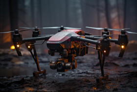 High tech guardians drones combating urban blazes, futurism imag