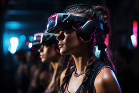 Futuristic exercise virtual reality class with holographic coach