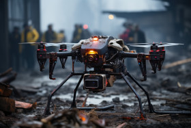 Drones and robots in search and rescue missions, futurism image