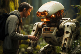 conservation conservation educational guided visitors robotic nature technology wildlife environmental robotics reserve sustainability exploration friendly experience education guides tours tourism naturalist ecological eco futurism hyperrealistic hdImagine Buddy