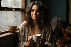 meditative mindfulness atmospheric serenity pensive moment raindrops cup beauty tranquility introspective peaceful tea cozy thoughtful pondering soothing window reflective ambiance quiet reflection hyperrealistic hdImagine Buddy