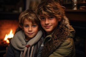 boys emotional winter siblings unity connection embrace companionship togetherness brothers close friendship comfort home love cozy hug warmth family room affection heartfelt indoor living intimacy genuine bonding seasonal relationship hyperrealistic hdImagine Buddy