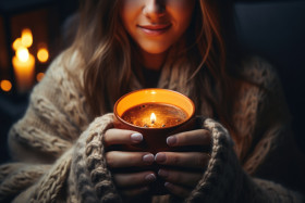 Close up of a woman hands embracing a warm mug in the comforting