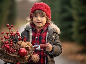 Young child carrying christmas gifts around, festivals, cultural