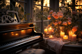piano candlelight candlelit notes perform corner atmosphere keys soothing artistic relaxation instrumental harmony melodic keys ambiance keyboard keys cozy peaceful candle instrument warmth intimate music glow inviting classical inviting play tranquility serene serenity comfort hyperrealistic hdImagine Buddy