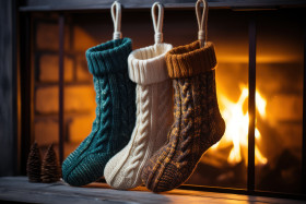 hygge cozy comfort warmth fireplace woolen socks relaxation simplicity pleasure home indoor snuggle fire drying socks softness soothing tranquil inviting domestic atmosphere hearth lifestyle textile clothing leisure hyperrealistic hdImagine Buddy