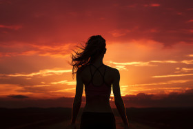 A female runner silhouette against a vibrant sunset capturing st