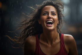 emotional triumph victory runner tears joy finish line achievement success determination perseverance athleticism competition motivation inspiration accomplishment goal winner hero celebration emotional release female race competition elation happiness strength resilience effort dedication passion sport athletics empowerment pride crossing milestone breakthrough overcoming challenges tears of happiness runner race race banner hyperrealistic hdImagine Buddy