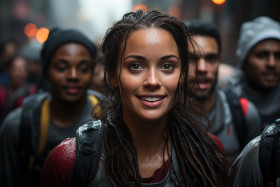 running runners downpour rain resilience determination adverse weather tenacity grit wet triumph perseverance athletic faces weather conditions running in the rain outdoor exercise motivation challenge water droplets endurance athletic achievement sport dedication weatherproof running gear physical activity outdoor fitness fitness motivation runner race race banner hyperrealistic hdImagine Buddy