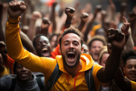 Male runner excels surrounded by a roaring crowd, runner image
