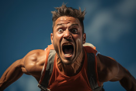 Visually stunning moment as runner leaps mid race, runner image