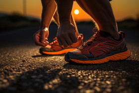 Runner exhibits speed and strategy tying shoes mid race, runner