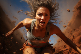 terrain overcoming trailblazing sandstorm desert the resilient outdoor resilience trail competition desert landscape running running conquering trailblazing running in endurance arid victory trail triumph strides determination desert challenges resilience sand athletic adventure resilient runner athletic challenging triumph conqueror female challenging running runner race race banner hyperrealistic hdImagine Buddy