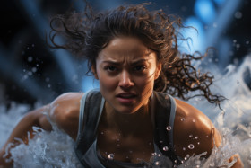 water obstacle scene water display outdoor course runner strides day racing race water aquatic strides athletic excitement challenge adventure warrior action packed obstacle racing water prowess obstacle energetic athletic dynamic conquering splash female obs aqua racing challenge competition agility race dynamic leap liquid aquatic runner race race banner hyperrealistic hdImagine Buddy