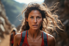 challenging trailblazing running competition terrain trail challenge uphill athletic runner ascent victory steep trail running trail victory running rugged trail challenging conqueror athletic triumph trailblazing conquering terrain triumph nature outdoor conquering running adventure triumphant trailblazing terrain female elevated uphill prowess ascent summit resilience runner race race banner hyperrealistic hdImagine Buddy