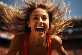 joyous cheering jumping victory race jump triumphant crowd stadium victorious runner celebration running victory celebration running competition fans moment cheering female joy in leap leap runner victory triumph joy elation victory scene ecstatic bound victorious jubilation athletic exuberant stadium stadium celebration jumping stadium triumphant runner race race banner hyperrealistic hdImagine Buddy