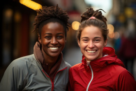 friendships positive fellow racing positive joy running smiling competitors runner competitive connection sportsmanship friendly partners joy competition running mid-race competition smile smiles moment competitor camaraderie genuine racing athletic sporting athletic friendly interaction female rivalry racing mid-race camaraderie bonds mid-race runner race race banner hyperrealistic hdImagine Buddy