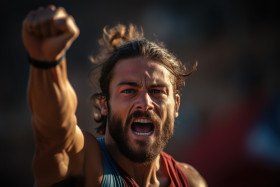 celebration finish up moment elation runner euphoria shot fist triumph victory in triumph line runner runner's pump close gesture male up finish elation finish line fist pumping close celebratory joy line runner victorious day up triumph race clench line finish triumph excitement joy finish celebration close line celebration intense runner race race banner hyperrealistic hdImagine Buddy