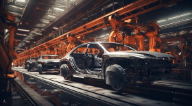 Robotic car manufacturing process, assembly line car production, assembly line car manufacturing