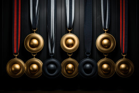 Artistic medals arrangement creates a striking showcase of team accomplishments, recognition and reward images