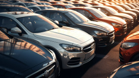 Lineup of cars ready for delivery, assembly line car production, assembly line car manufacturing
