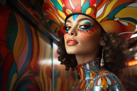 maze vibrant woman display illusion hyperrealistic carnival distorted hd funhouse reflections mask distortion mesmerizing surreal mirror festival reflective kaleidoscopic attraction colors kaleidoscopeImagine Buddy