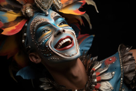 Masked mid air marvel acrobatic performance in carnival, festive carnival photos