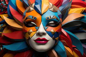 Carnival mask illusion mosaic art reveals monumental mask, festive carnival photos