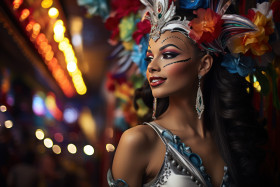Shadows carnival masked woman in dimly lit alley, festive carnival photos