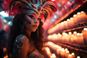 Lantern labyrinth carnival masked woman festive journey, festive carnival photos