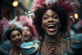 dancers attire rhythm festival lively streets procession musicians musical cultural rhythmic dance festivity performance venetian energetic extravaganza hd carnival spectacle revelry entertainment celebration street vibrant parade atmosphere energy hyperrealisticImagine Buddy