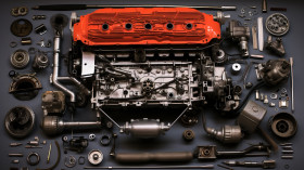Detailed view of car engine parts, industrial machinery stock images ai, midjourney prompt ideas