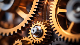A close-up of a machines gears the gears are in sharp focus, industrial machinery stock images ai, midjourney prompt ideas