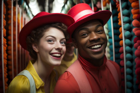whimsical lighthearted reflections carnival interactive reality adventure hd happy atmosphere maze twists festive quirky challenge distorted hyperrealistic couple entertainment festival navigation joy park turns exploration outdoor games laughter playful mirror activity ride funhouse day images reflection love amusement enjoyment amusing valentine attraction fun valentinesImagine Buddy