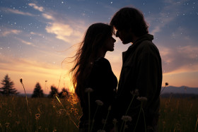 A couple finds connection under the starlit sky, engagement, wedding and anniversary image