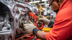 Car door assembly in progress, industrial machinery stock images ai, midjourney prompt ideas