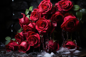 The unending beauty of affection captured in a waterfall of red roses, engagement, wedding and anniversary image