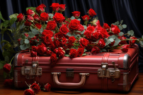 Red roses on a suitcase set the stage for a romantic adventure, engagement, wedding and anniversary image