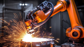 Robot arm performs complex task , industrial machinery stock images ai, midjourney prompt ideas