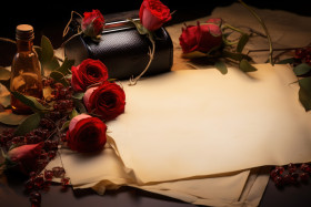 Vintage setting with chocolate covered strawberries, engagement, wedding and anniversary image