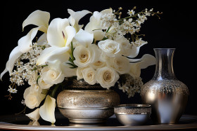 elegant table noir et blanc affair elegant arrangement anniversary birthday monochrome elegance graceful contrast monochromatic florals black and white elegance orchids monochrome affair monochromatic opulence silver elegance elegant centerpiece dating wedding anemones monochromatic masterpiece hyperrealistic calla lilies silver vessels black and white theme silver symphony valentine silver adorned table opulent monochrome exquisite florals silver containers black and white table hd engagement elegant contrast black and white settingImagine Buddy