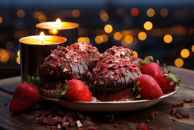 Chocolate covered strawberries in an urban rooftop setting, engagement, wedding and anniversary image