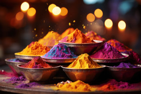vibrant colors festive lighting radiance vibrant glowing lanterns illuminated celebration hd festive radiance luminous lanterns festival ambiance glowing effects glowing background hyperrealistic background warm illumination festive glow festive aura radiant glow holi powders illuminated powders warm festival illumination luminous luminous atmosphereImagine Buddy